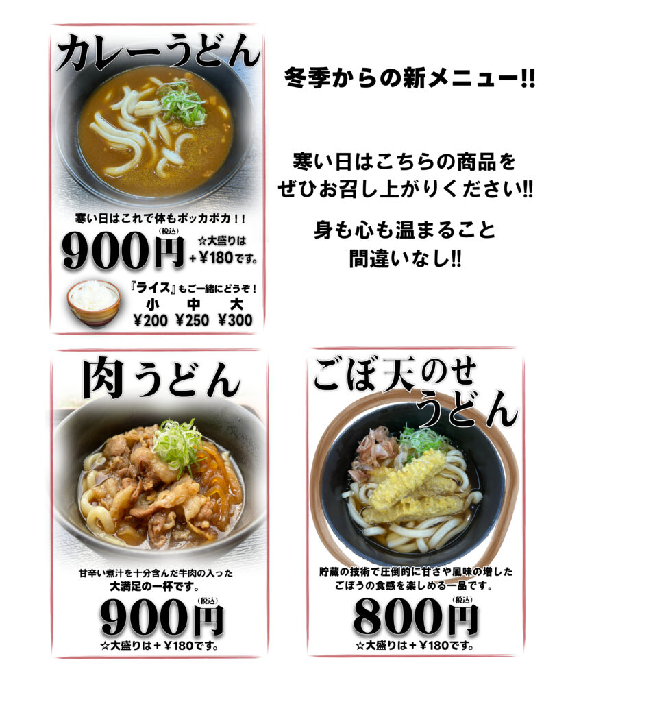 - 【冬季からの新メニュー】ごぼ天のせうどん 800